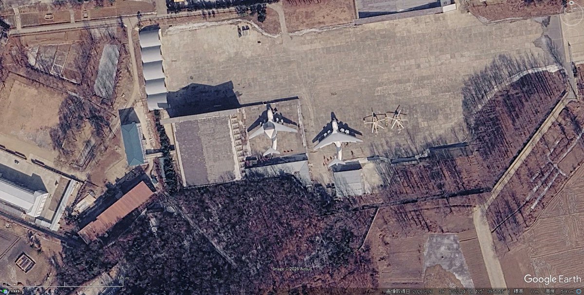 衛星拍到北韓停在平壤(順安)機場的預警機 雷達罩直徑約11米,與A-50相當;三角形本身(雷達)邊長約10米,與KJ-2000類似